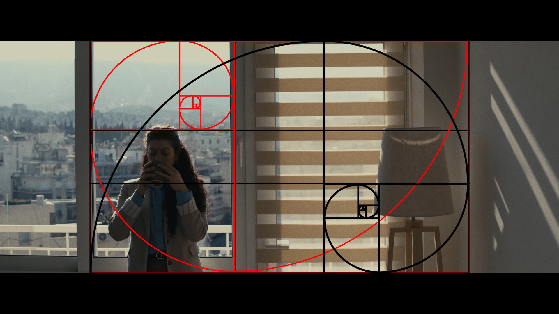 The Golden Ratio was used as it is. Not stretched or cropped for the “Cinematic” Aspect Ratio of 2.4:1. It was sketched and placed on the monitor of the camera, so the majority of the shots were taken with this approach.